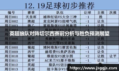 英超狼队对阵切尔西赛前分析与胜负预测展望
